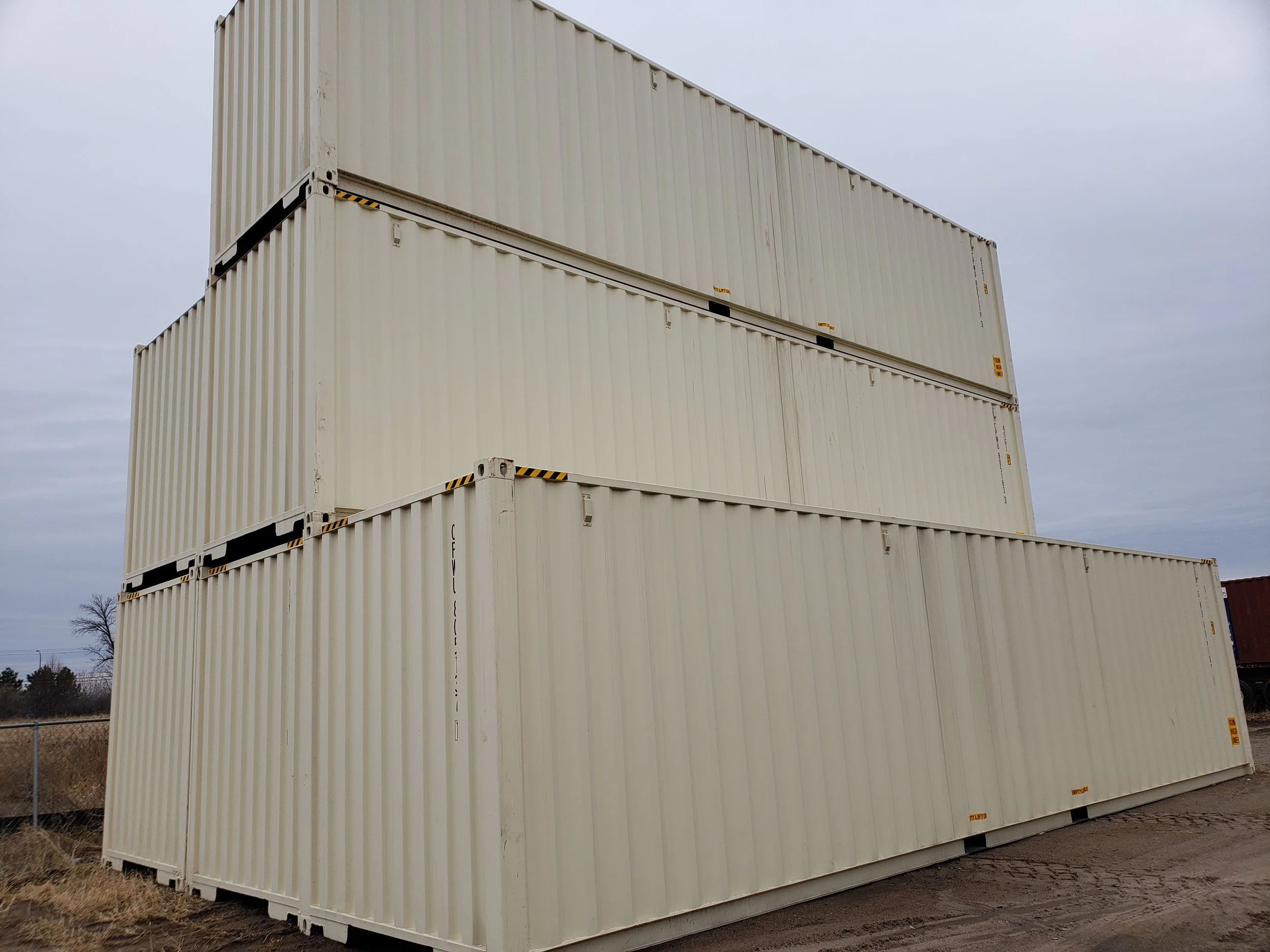 Two 10’ containers stacked on top of each other in Minneapolis, available for sale.